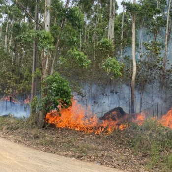 Um incêndio em vegetação de grande extensão mobilizou equipes do Corpo de Bombeiros na tarde desta segunda-feira (22), na comunidade de Santa Apolônia, em Sangão.