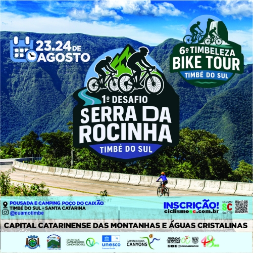 A Federação Catarinense de Ciclismo e a Prefeitura Municipal, através da Secretaria Municipal de Turismo, Esporte e Cultura preparam um incrível desafio em uma das serras mais belas do Brasil! “Rocinha + bike = aventura completa!