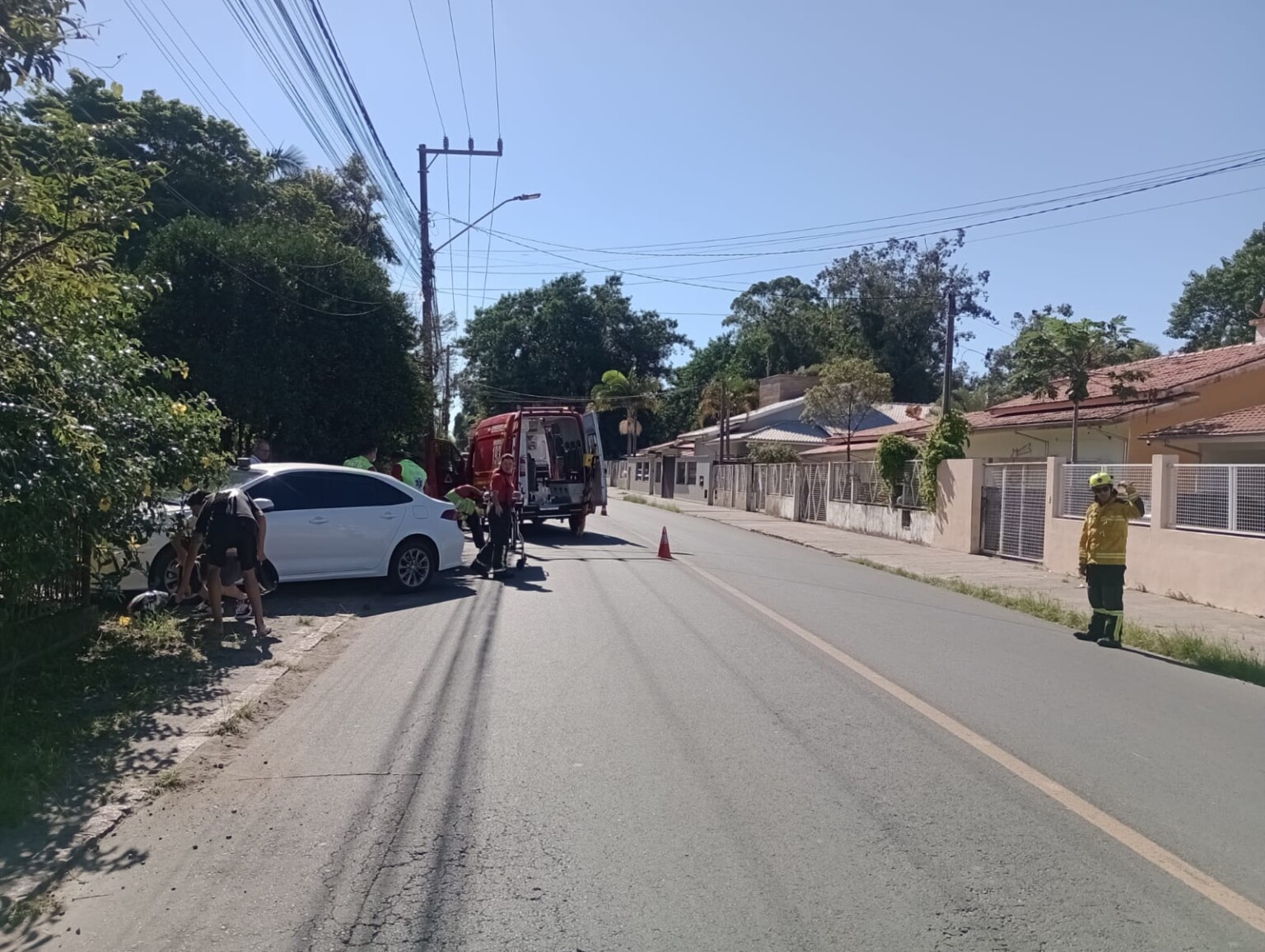 Um acidente de trânsito envolvendo um carro e uma motocicleta deixou duas pessoas feridas na manhã deste sábado (18), no bairro Revoredo, em Tubarão.