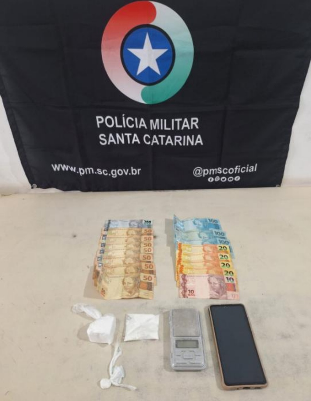 O suspeito foi preso em flagrante e encaminhado à Delegacia de Polícia, juntamente com o celular e os entorpecentes apreendidos.