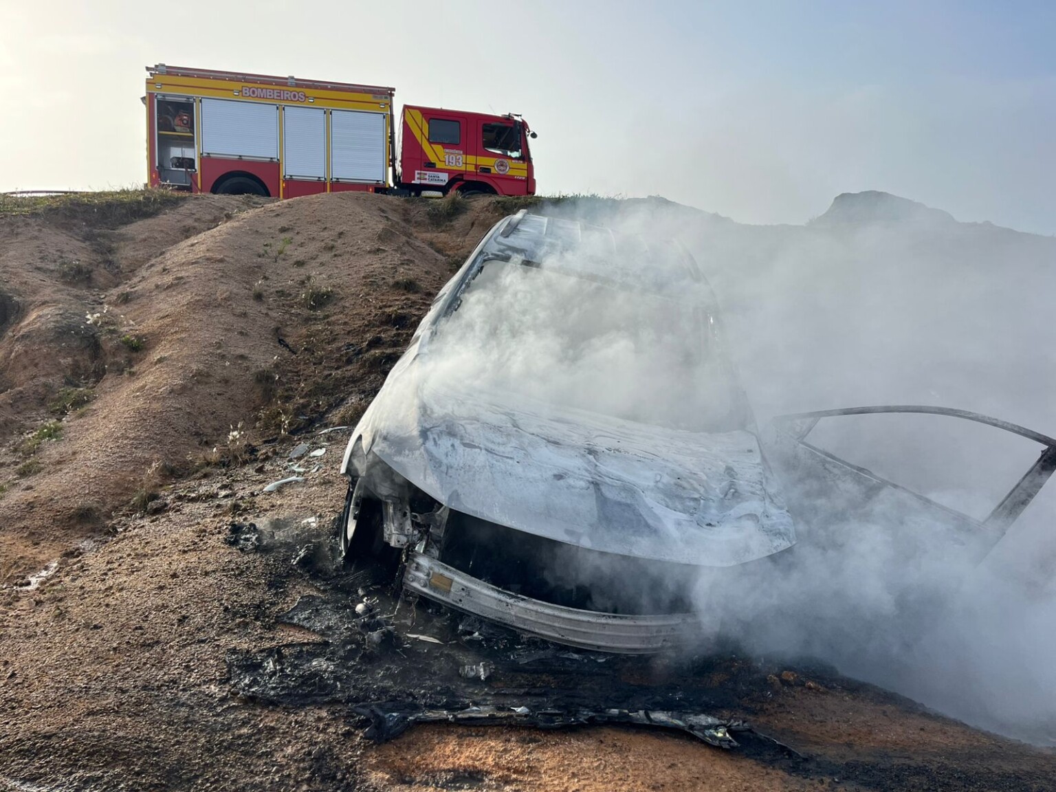 Um incêndio em veículo mobilizou equipes de emergência na manhã desta segunda-feira, em Laguna. A ocorrência foi registrada na região da Pedra do Frade, no bairro Praia do Gi.