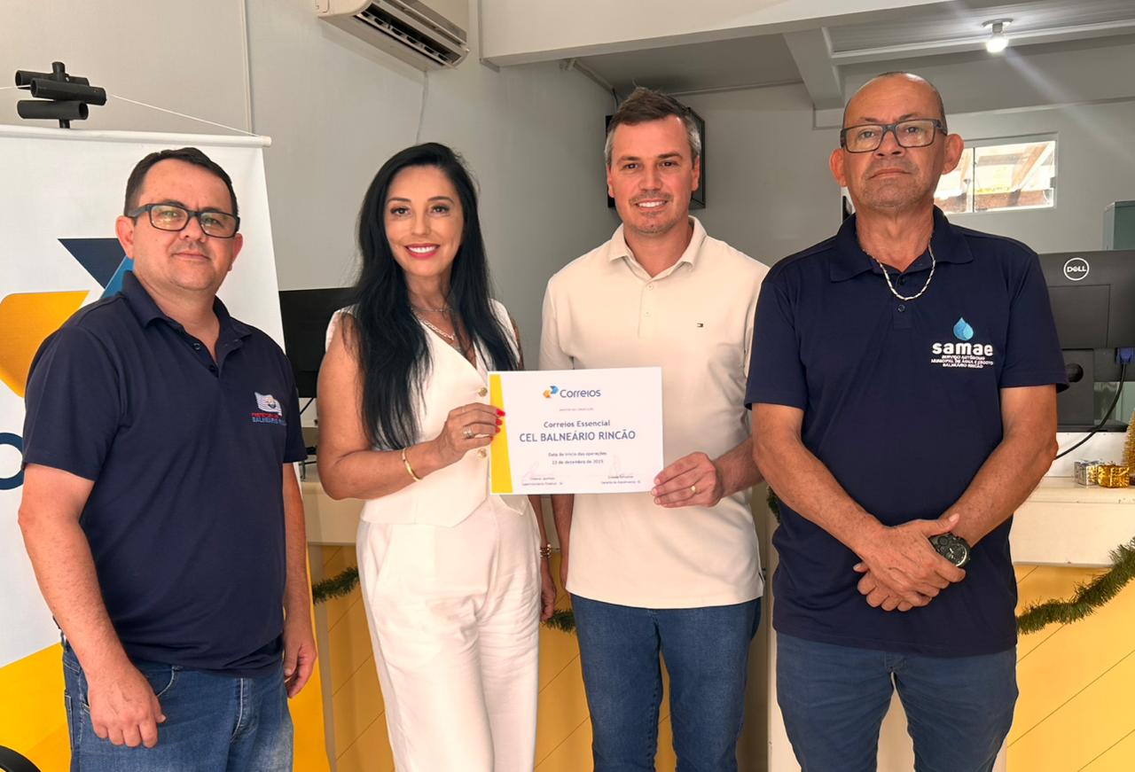O Balneário Rincão inaugurou na tarde desta terça-feira (23), uma unidade do Correios Essencial, que é o novo canal de atendimento no município. A abertura deste novo canal beneficiará toda a população do município, que passa a dispor dos serviços ofertados pelos Correios. O modelo possibilita a comercialização, além dos serviços postais básicos, dos principais produtos do segmento de encomendas, como Sedex, PAC, logística reversa, dentre outros, além da entrega interna de objetos.