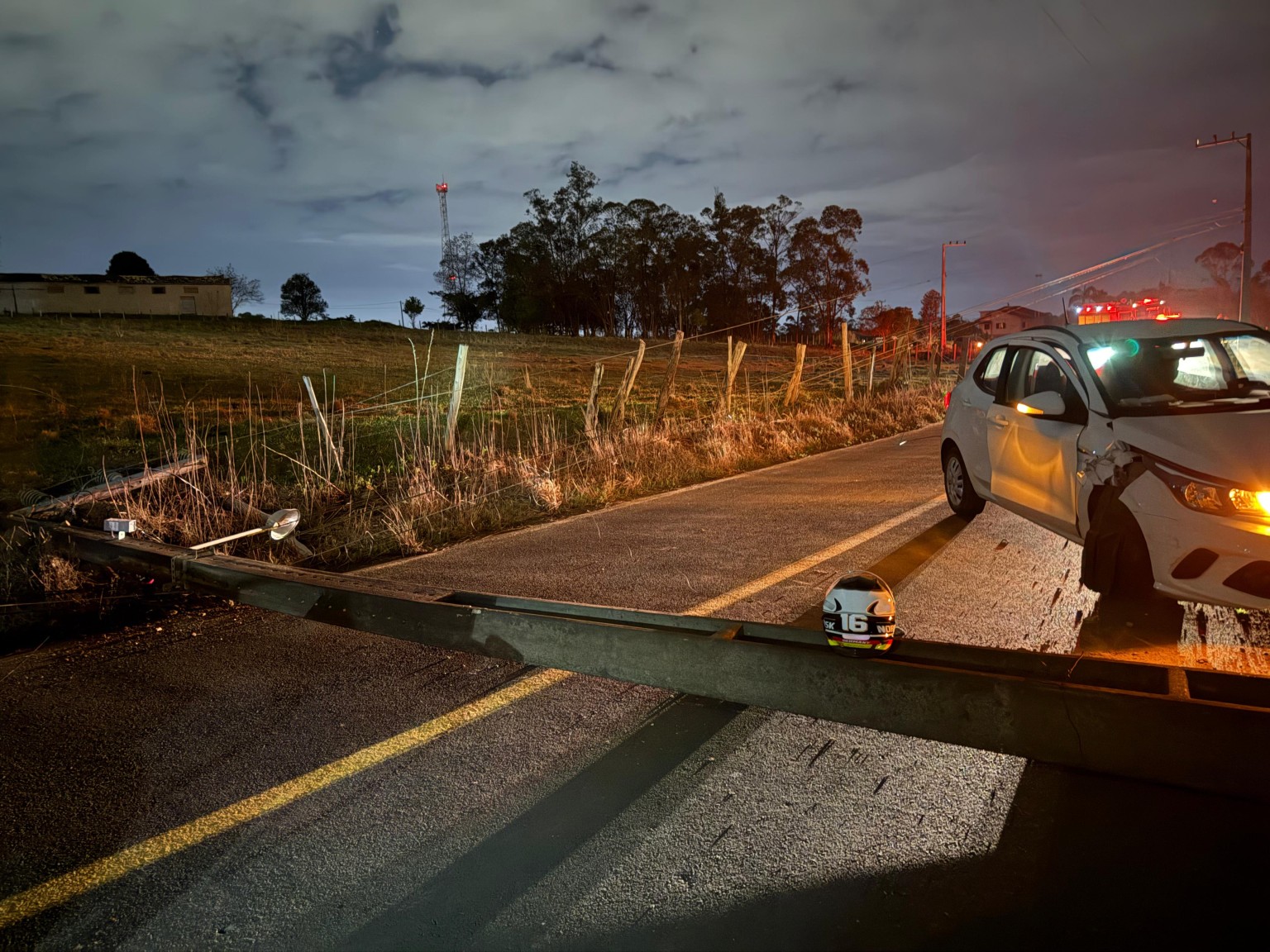 Segundo o Corpo de Bombeiros, a ocorrência foi atendida por volta das 19h18, na Rua Augusta Pizetti de Oliveira. No local, os socorristas encontraram um veículo sobre a via e um poste caído, com cabos de alta e baixa tensão obstruindo a pista.