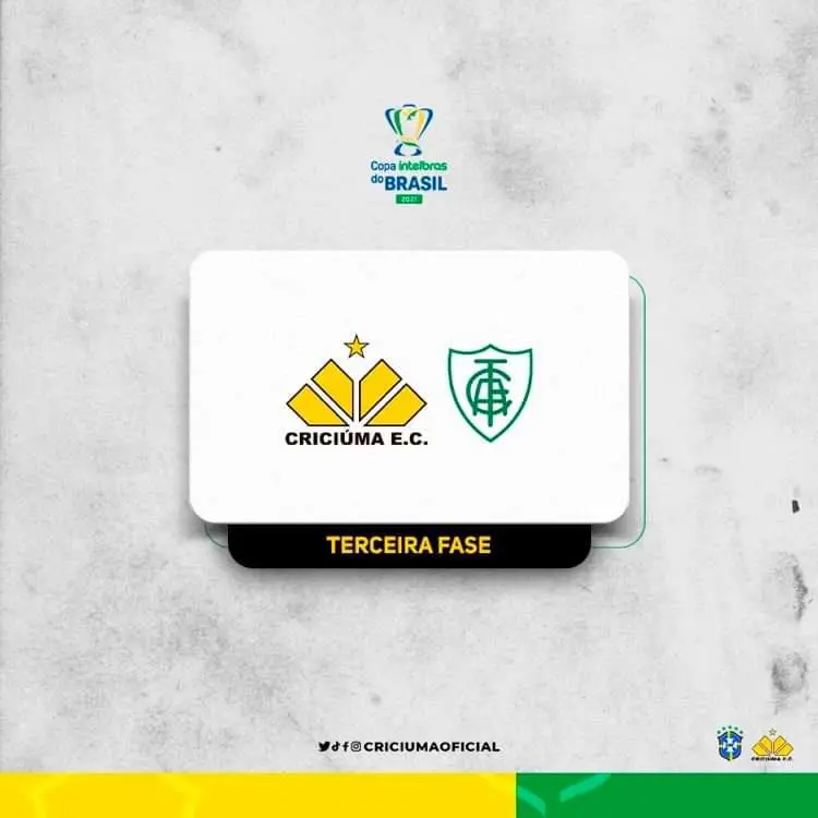 O Criciúma enfrentará o América Mineiro por uma vaga nas oitavas da competição nacional. A notícia foi anunciada nesta sexta-feira (23), após o sorteio da Confederação Brasileira de Futebol (CBF) dos confrontos da terceira fase da Copa do Brasil 2021.