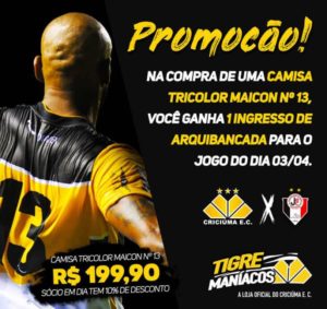 Outra oportunidade especial é a de comprar uma camisa oficial do Maicon na Loja Tigre Maníacos e ganhar um ingresso de arquibancada. A camisa tem o valor de R$ 199,90. Os sócios em dia possuem 10% de desconto. Crianças até 12 anos, acompanhadas de um pagante, possuem entrada gratuita. Para ter acesso é necessário retirar o ingresso na secretaria.