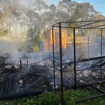 Um incêndio numa estufa registrado pela Polícia Militar, nesta madrugada,