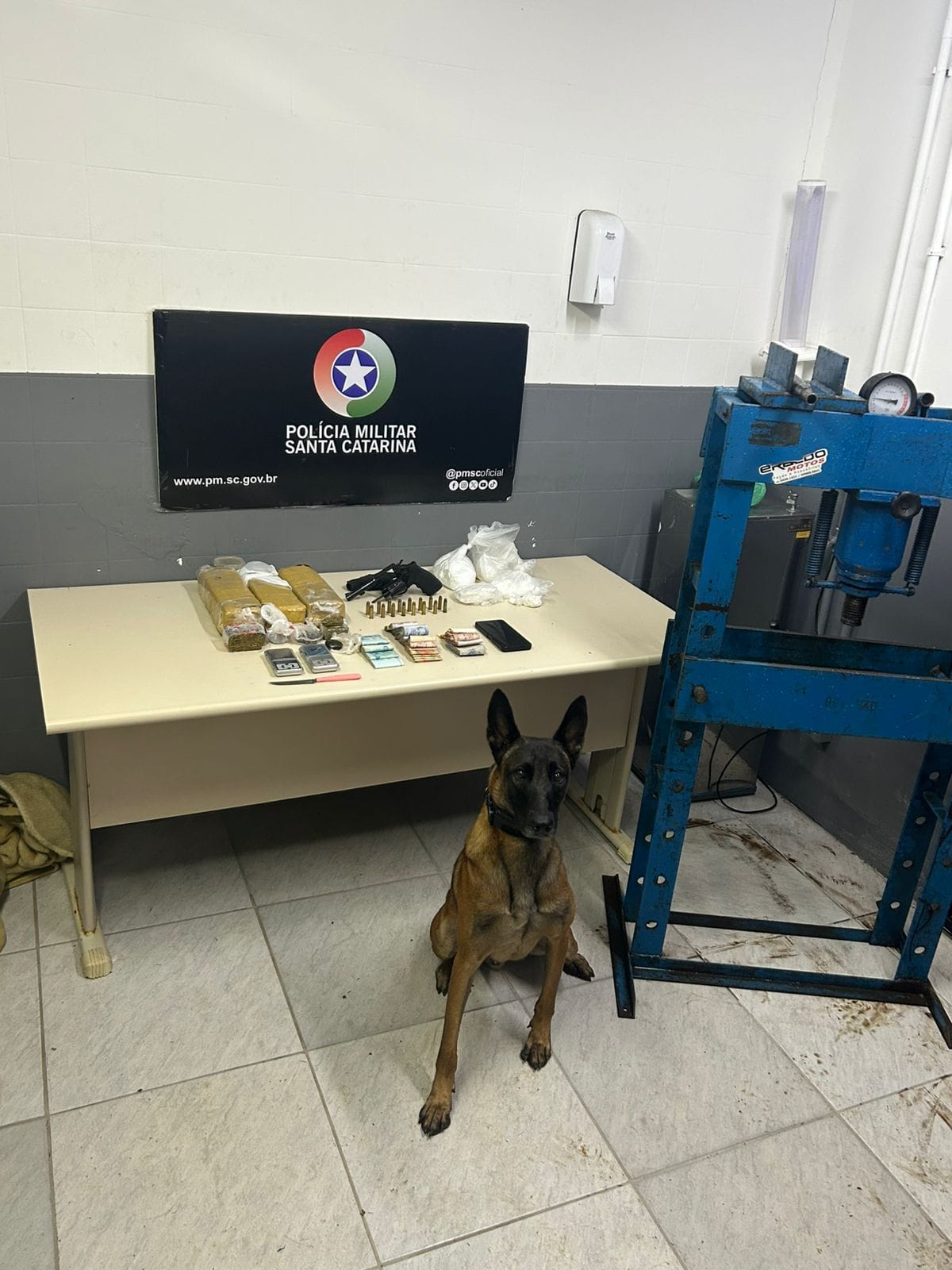 Durante as buscas, foram localizados diversos materiais relacionados ao tráfico de drogas, incluindo porções de maconha e cocaína, balança de precisão, prensa utilizada para compactação de entorpecentes e dinheiro em espécie. Em uma construção nos fundos do terreno também foi encontrado um revólver calibre .38 com numeração suprimida, além de munições.