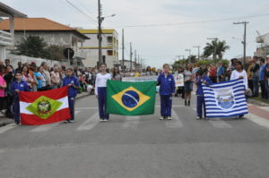 Quem abriu o desfile foi a estudante Larissa Rafaely Crecêncio, da escola Arroio Rincão que leu o poema selecionado para as Olimpíadas de Português que representará nossa cidade. O poema que fala sobre Balneário Rincão emocionou a todos que vivem na cidade. “…No calçadão eu passeio com meus amigos, em uma cidade que cresce junto comigo. A fome bateu chegou meio dia, e não há nada melhor que almoçar com a família. A tarde chegou para a lagoa eu vou partir, e são sete lagoas para se divertir…”, declamava a pequena aluna da 5ª série da Escola Municipal Arroio Rincão.