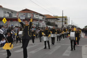 Exército, Polícia Militar, Polícia Civil e Bombeiros abriram o desfile sendo aplaudidos por todos, em forma de respeito. Fanfarras da escola Humberto de Campos, de Criciúma, Maria da Glória de Içara e Escola Melchíades de Balneário Rincão trouxeram para a Avenida muita dedicação e emoção. Os alunos da rede municipal de Balneário Rincão trouxeram para a Avenida o tema Construindo Hoje, Um novo Rincão e puderam mostrar seus trabalhos e o crescimento da cidade.