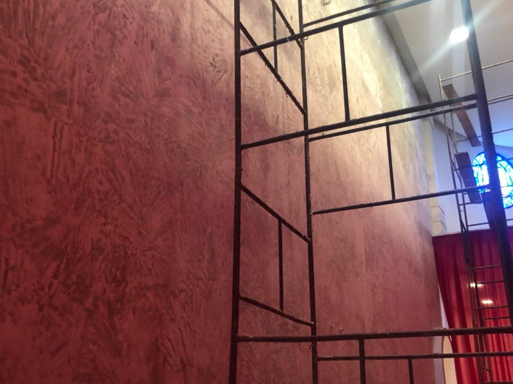 O espaço onde será feito o mosaico, no presbitério, já tem uma tenda o cobrindo e a fase de preparação para receber as peças já foi iniciada. O responsável pela montagem será o Padre Bento Zilli, que é especialista no assunto e realizou o desenho. “Será, com certeza, uma maneira bela de anunciar o evangelho, uma forma visual de estar diante do mistério, um jeito próprio de favorecer a contemplação e a oração por meio da imagem. É a beleza da arte expressando as belezas do amor de Deus”, comenta.