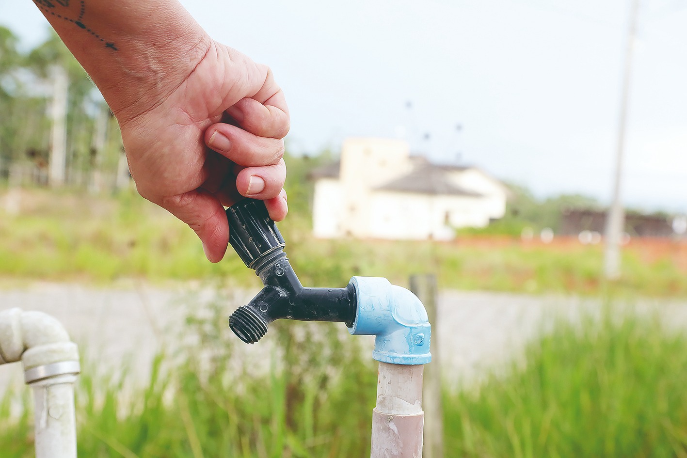 O Loteamento Mirante do Rincão é considerado relativamente novo e está localizado na região da Lagoa do Faxinal. Ele inicia na parte mais baixa, próximo à rótula de acesso à Zona Sul e às lagoas, e sobe em direção a um centro de eventos nas proximidades. Lucas explica que adquiriu o terreno há cerca de três anos, construiu a residência e, desde o início, o problema no abastecimento já era conhecido. “Desde que comecei a construir, a gente sofre com isso. Não é um problema de agora. É relativamente constante. Por isso, já sabendo da situação, a casa foi construída com duas caixas d’água: uma maior na residência e outra menor no quiosque”, explica.