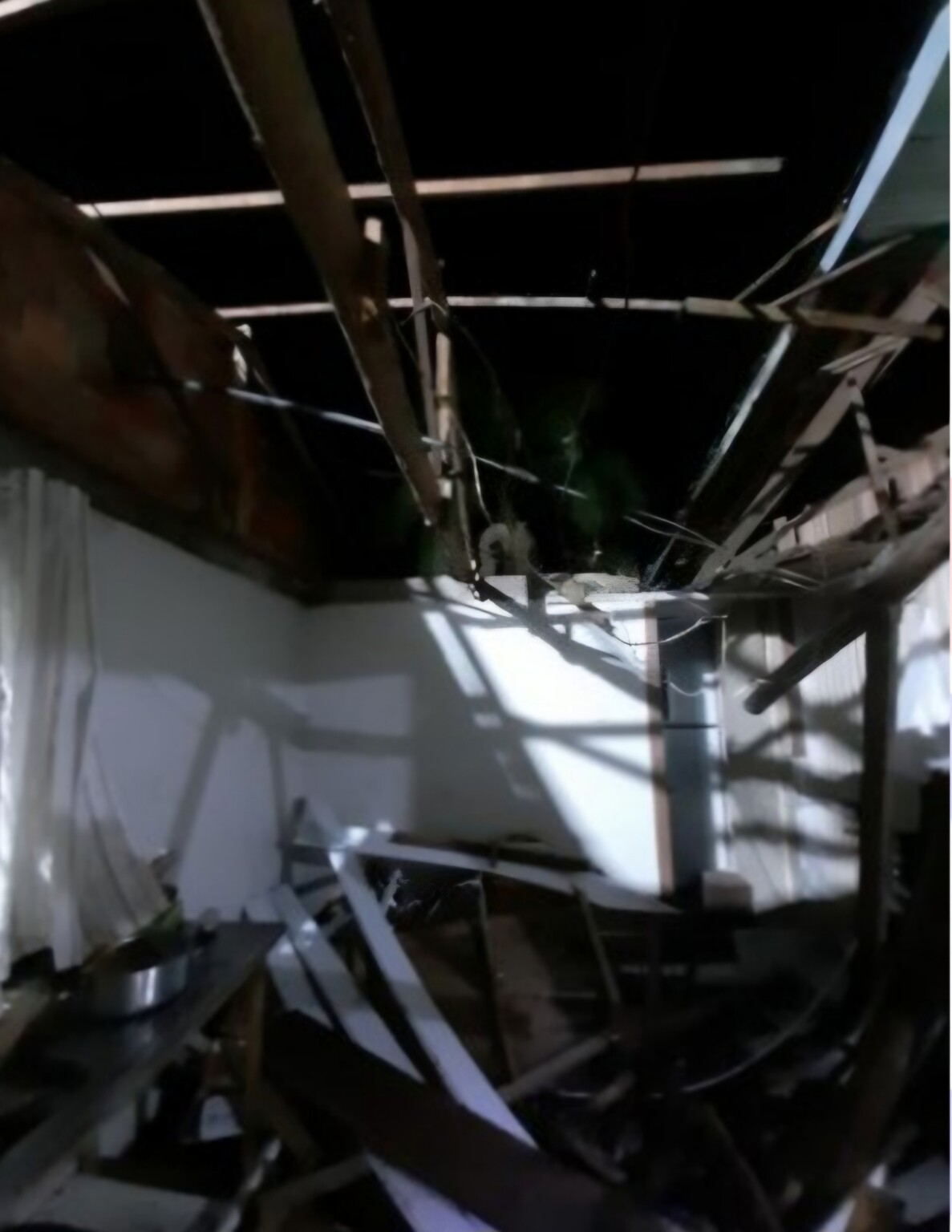 O inquilino então saiu dia 31/12 para passar a virada de ano com sua família na casa de sua sogra, em Balneário Rincão, e ao retornar, neste dia 2, encontrou a casa na qual mora com uma parte sem telhado e com o forro caído. O que, segundo ele, foi o proprietário da residência que quebrou.