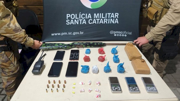 Na noite de quinta-feira, 26, a Polícia Militar de Santa Catarina (PMSC), através do 34º Batalhão de Polícia Militar (BPM), apreenderam um adolescente e prenderam um homem por porte ilegal de arma de fogo e munições, além de tráfico de drogas, no bairro Penha, em Paulo Lopes.