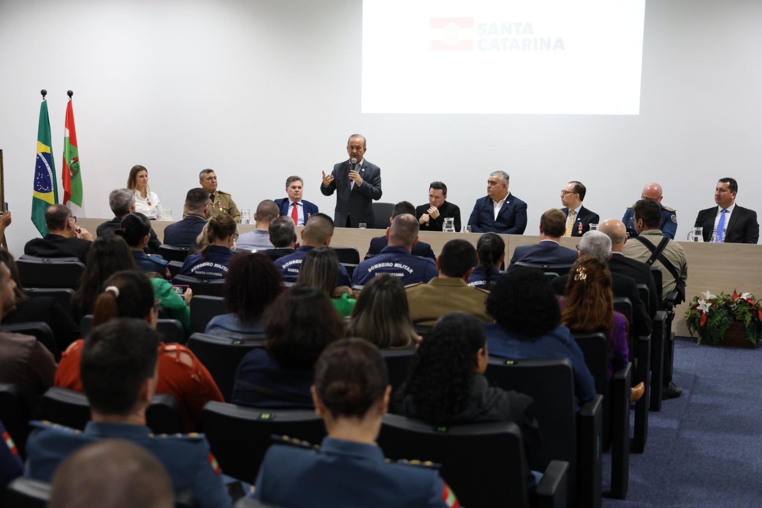 A solenidade aconteceu no complexo administrativo da SSP-SC, em Florianópolis, e contou com a presença também do secretário de Estado da Segurança Pública, Sargento Lima, do secretário-adjunto da Segurança Pública, Flávio Graff, dos comandos e representantes das forças de Segurança de SC – Polícia Militar, Polícia Civil, Corpo de Bombeiros Militar e Polícia Científica –, de integrantes do Judiciário e do Ministério Público, servidores da Secretaria de Segurança e dos homenageados com a medalha da Segurança Pública.