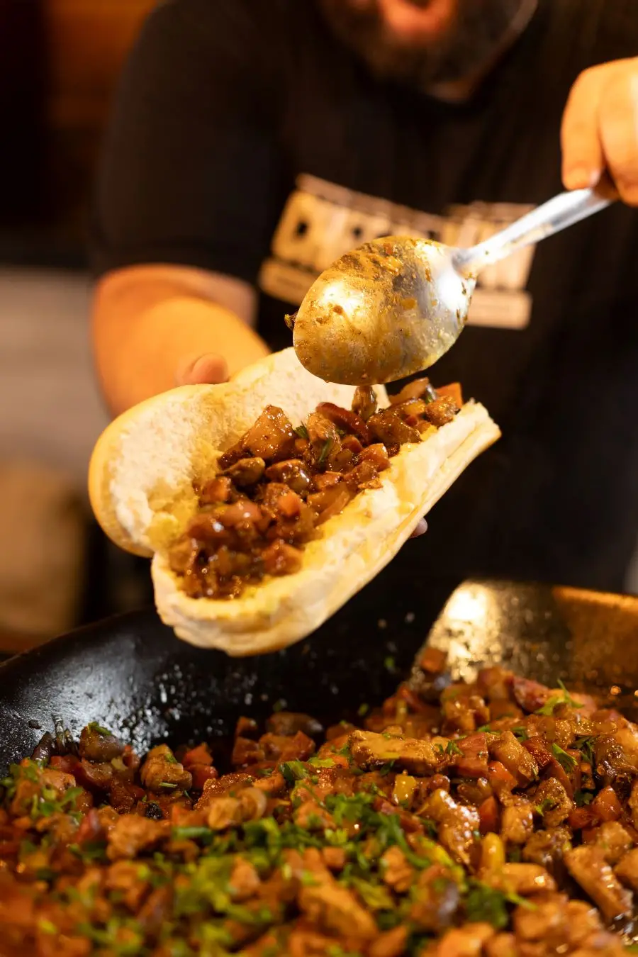 2. Recheie com o entrevero, ajustando a quantidade para que caiba confortavelmente no pão e possa ser mordido com facilidade.