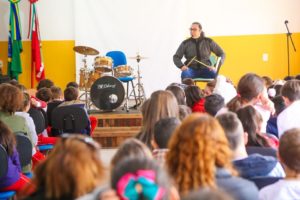 O projeto “Concerto Didático” começou a ser desenvolvido na terça-feira, dia 13, na EMEF Angelo Zanelatto. As atividades percorrerão as escolas municipais com apresentação do baterista Cristiano Forte e finalizam no dia 5 de setembro.