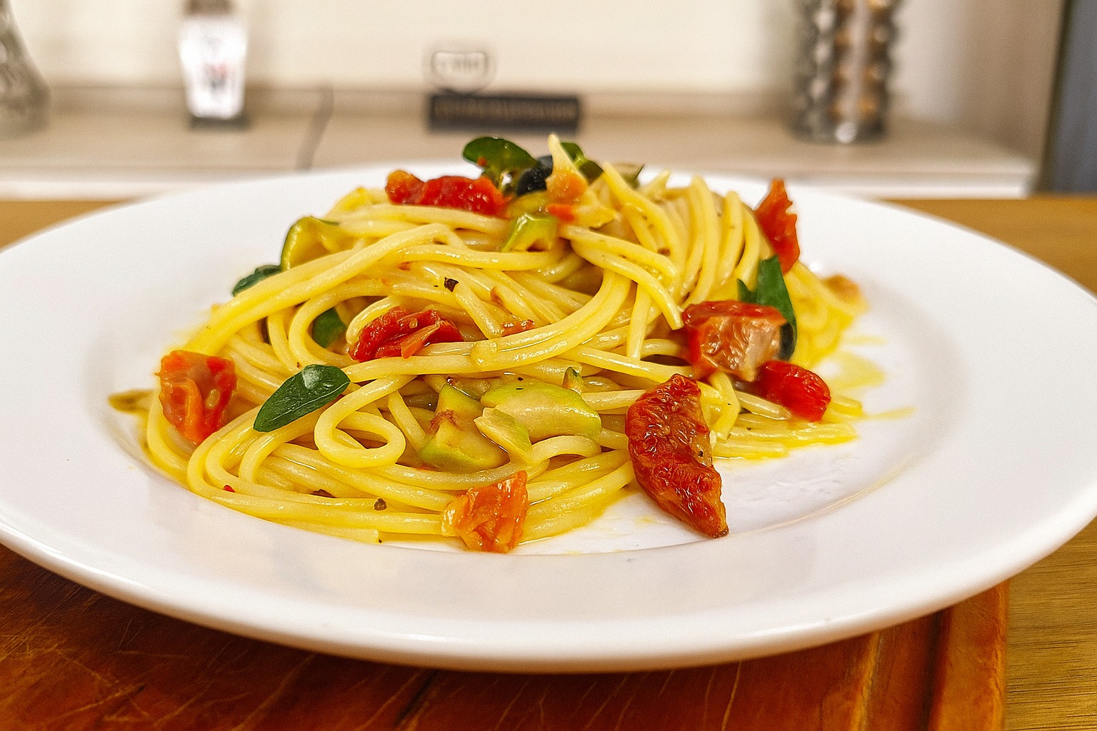 Aprenda a fazer um espaguete à siciliana vegano, com tomate seco e azeitonas. Uma receita leve, mediterrânea e irresistível!