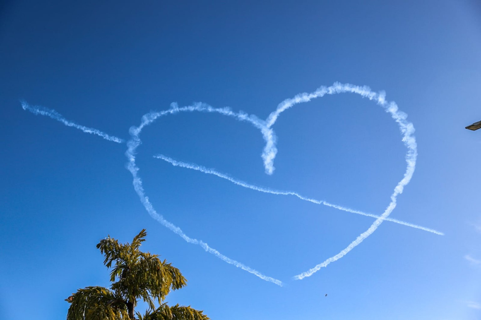 O momento mais marcante veio ao final da apresentação, quando os aviões desenharam um grande coração e o número “100” no céu, em homenagem ao centenário da cidade.