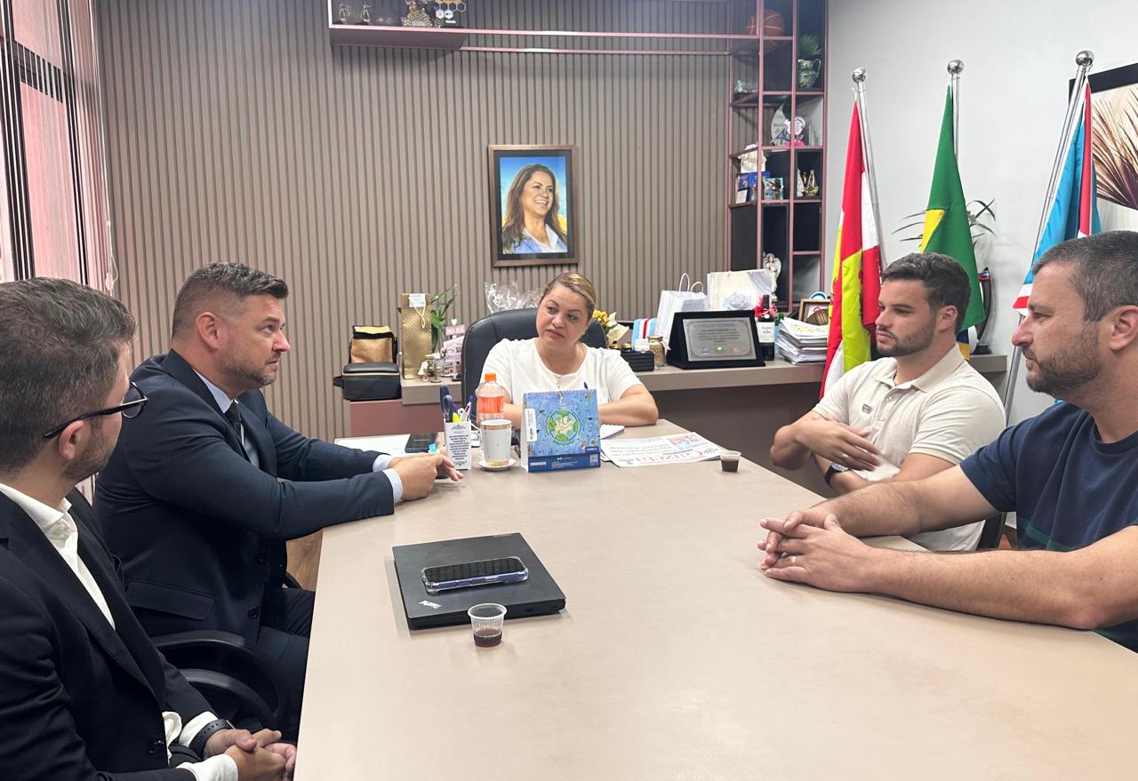 Para tornar Içara uma cidade ainda mais atrativa para investimentos e novos negócios, a prefeita Dalvania Cardoso, o vice-prefeito Alex Michels, os secretários da Indústria e Comércio, Davi Nazário, e da Fazenda, Márcio Folis, receberam o presidente da Junta Comercial do Estado de Santa Catarina (Jucesc), Fernando Baldissera, além do diretor de registro Diego Amorim, na manhã desta segunda-feira (27). Em pauta estiveram a adesão do Município ao programa Simplifica SC e a instalação de um escritório da Junta Comercial na própria sede da Prefeitura Municipal de Içara.