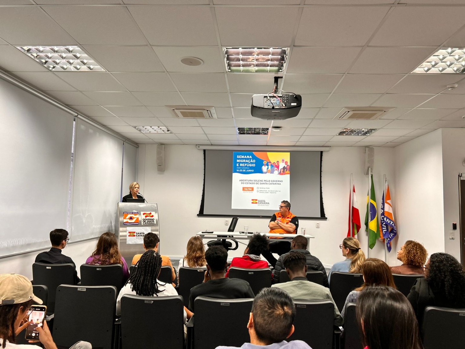 A secretária da SAS, Maria Helena Zimmermann, ressaltou os esforços do Estado em garantir dignidade a todos que escolherem Santa Catarina e destacou que o grande desafio é garantir que eles tenham acesso a políticas públicas de todas as áreas, desde Assistência Social, Saúde, Educação, até ingresso no mercado de trabalho. “Por isso articulação e parcerias com diversas entidades governamentais e não governamentais como as que estão aqui hoje são fundamentais. Com elas realizamos intersetoriais como mutirões para confecção de documentos e encaminhamento para o mercado de trabalho, entre outras”.