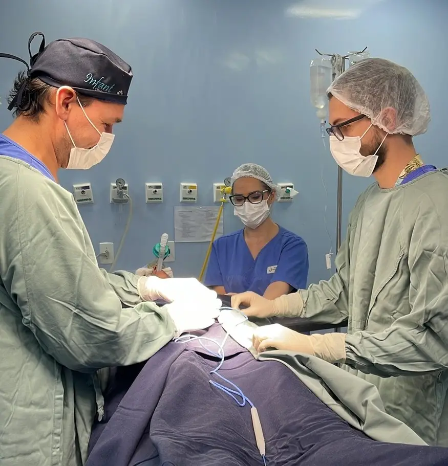 A coordenação na sala cirúrgica foi realizada pelas enfermeiras Thaís Medeiros, Jaqueline Martins e Franciele Kreutz e pela equipe médica composta pelos especialistas Dr. Victor Taffarelo, Dra. Gabriele Debs, Dr. Leandro de Moura e Dra. Jessica Trindade, além do apoio dos técnicos de enfermagem.