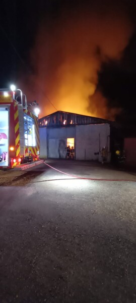 O fogo teve início no depósito se alastrando para as oficinas. Realizado combate direto às chamas e resfriamento de parte das estruturas da empresa.