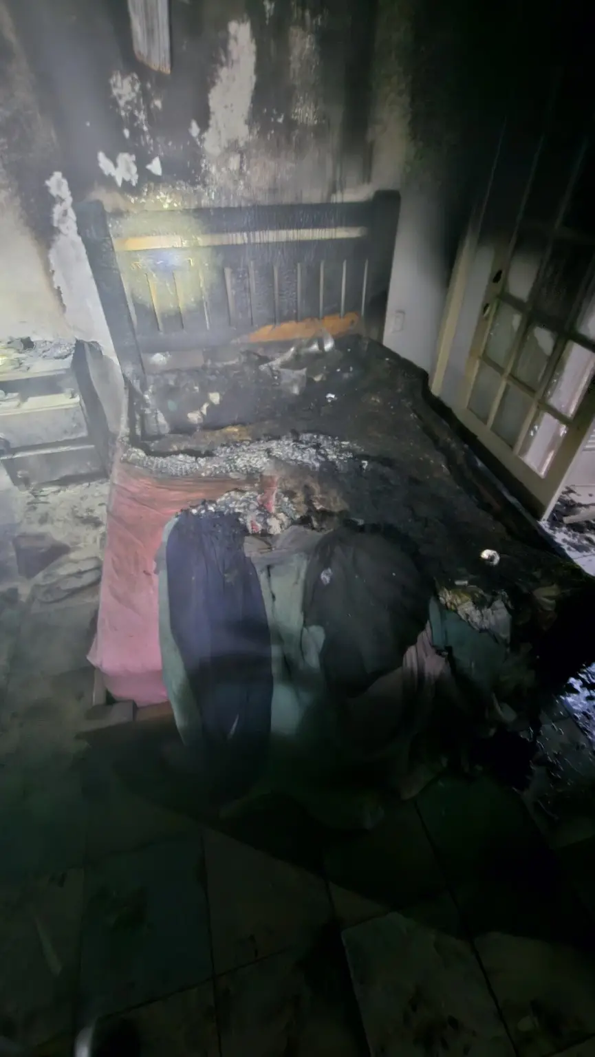 Foi verificado que o foco do incêndio iniciou no quarto suíte do casal, onde havia uma cama com colchão magnético e um ar-condicionado, que foram danificados pelo fogo. Os demais utensílios da casa foram atingido pela fumaça.