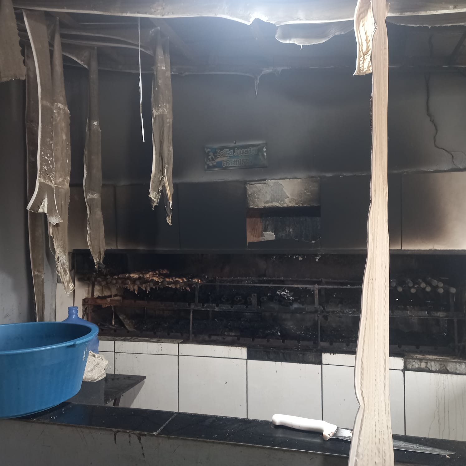 As chamas, segundo a equipe que prestou atendimento, se concentraram na churrasqueira da cozinha, atingindo também o forro de PVC. O principio de incêndio foi controlado por populares que utilizaram baldes de água para conter as chamas.