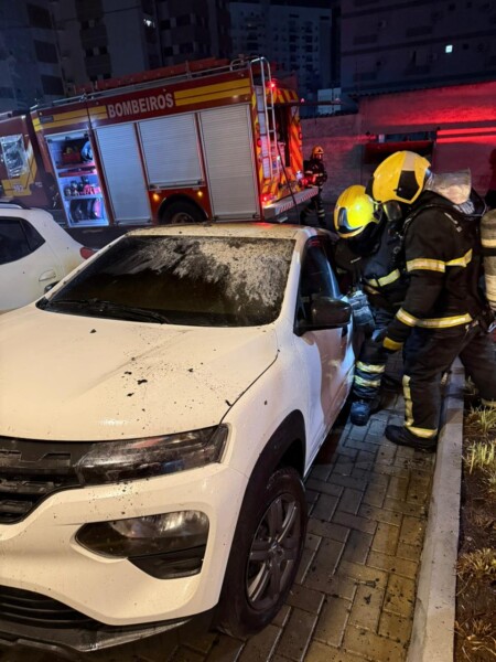 Um incêndio em veículo mobilizou o Corpo de Bombeiros na madrugada deste sábado (21), por volta das 4h10, na Rua Martinho Acácio Gomes, no Centro de Criciúma.