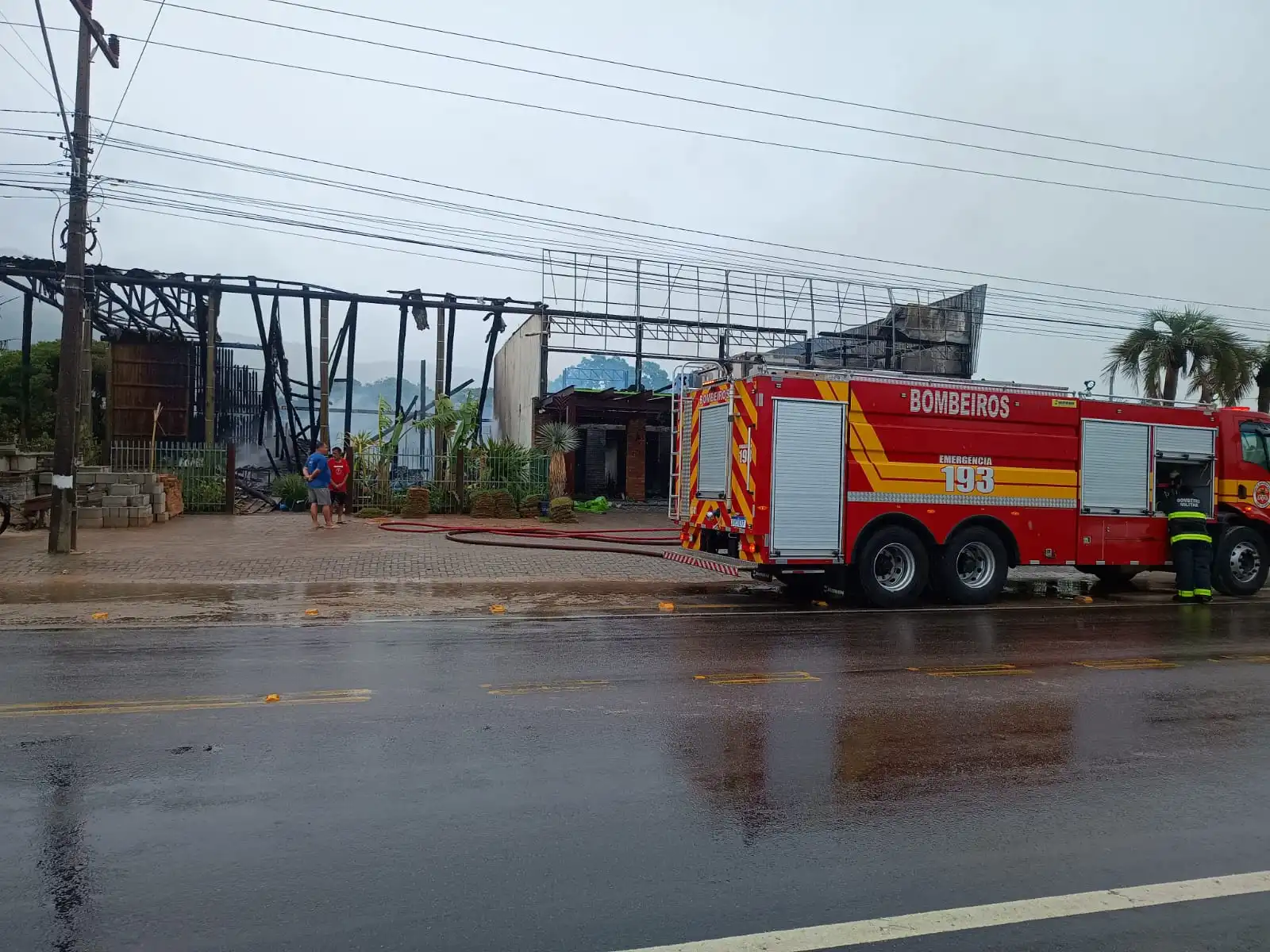 As guarnições dos quartéis de Imbituba, Garopaba e Imaruí foram acionadas para atender o sinistro, que atingiu uma edificação com área aproximada de 600 metros quadrados. No local, as equipes encontraram o incêndio já em fase de desenvolvimento completo, com a loja e o depósito totalmente tomados pelas chamas.