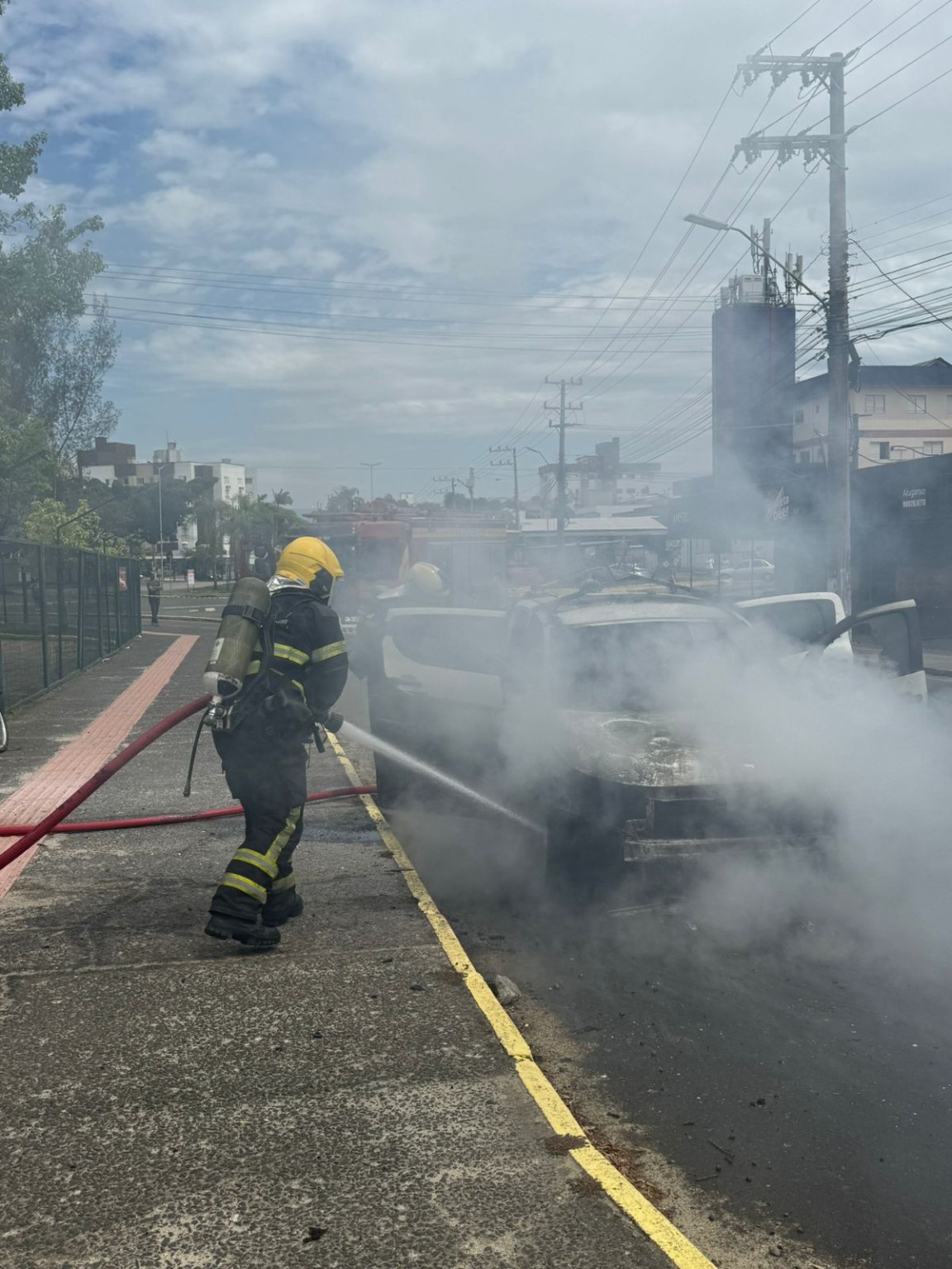 Ao chegarem ao local, os bombeiros encontraram o veículo estacionado à margem da pista, com o compartimento do motor e o habitáculo totalmente em chamas. Por segurança, a guarnição realizou o bloqueio da via, isolou a área e acionou a Polícia Militar para auxiliar no controle do trânsito.