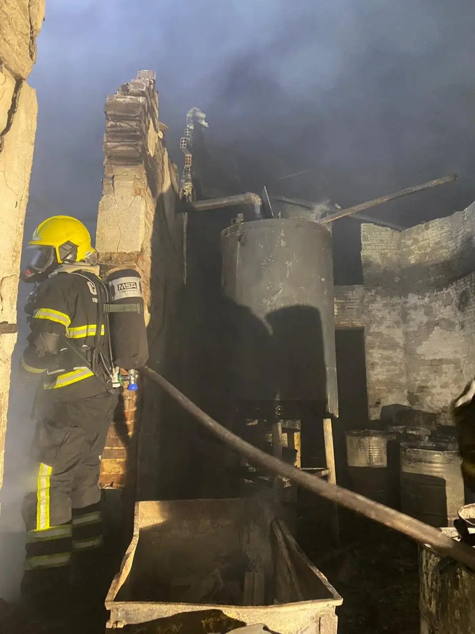 No local do incêndio, foi identificado o irmão do proprietário da empresa, o qual informou que havia cerca de três mil litros de solvente armazenados no depósito.