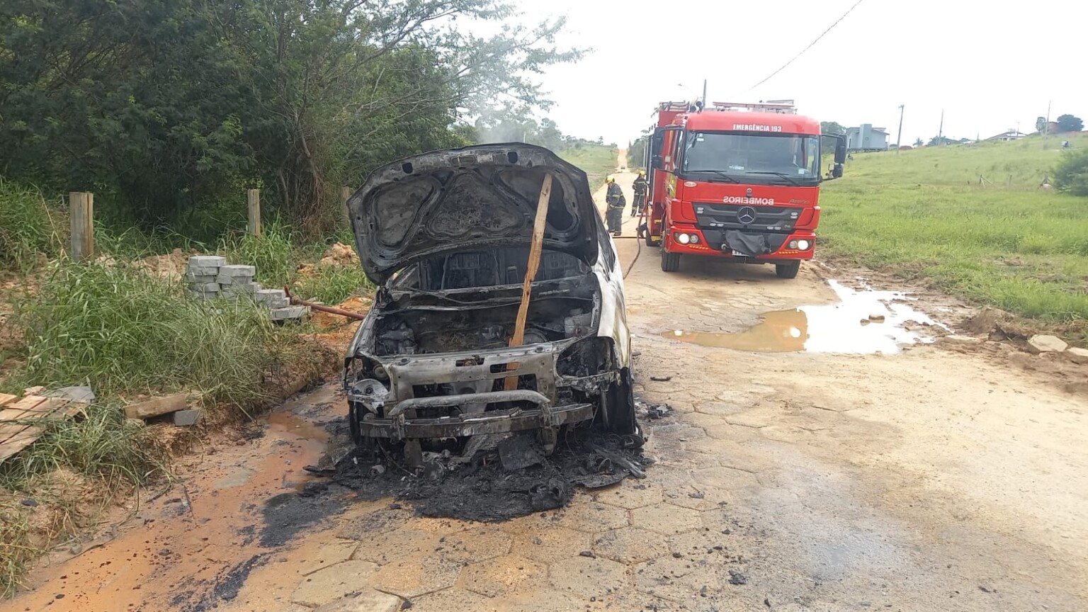 Os bombeiros militares atenderam nesta tarde a uma ocorrência de incêndio num veículo Cross Fox, na Rodovia Vadislau, no bairro Nossa Senhora de Fátima, sendo que o condutor encontrava-se fora do veículo sem ferimentos.