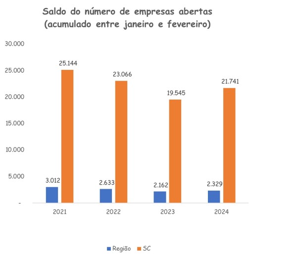No primeiro bimestre, o saldo entre aberturas e fechamentos ficou positivo em 2.329 empresas na região, diante de 2.162 registrado no mesmo período do ano passado, o que representa crescimento de 7,7% nesse comparativo.