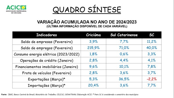 O boletim completo e o Anuário Estatístico e Econômico de Criciúma estão disponíveis para consulta no site da Acic.