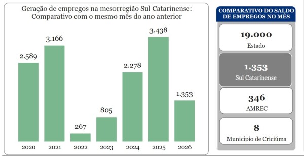 “Em resumo, podemos dizer que o mercado de trabalho formal no Sul catarinense iniciou 2026 com movimentos distintos, refletindo tanto fatores sazonais – especialmente ligados ao comércio no pós-festas – quanto a continuidade do desempenho positivo de setores estruturais, como indústria e construção. Esse comportamento evidencia a combinação entre ajustes típicos de início de ano e a resiliência de atividades com maior peso produtivo”, ressalta Rodrigues.