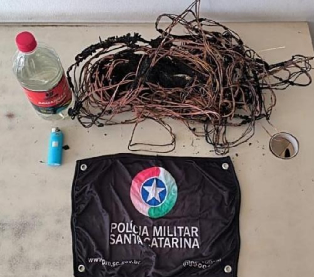 O suspeito foi localizado no momento em que queimava os fios furtados, prática comum utilizada para retirar o revestimento do material e facilitar a venda do cobre.