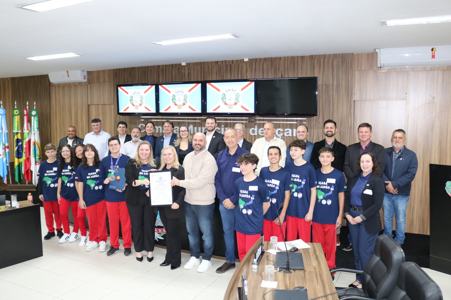A diretora ressaltou a atuação do Poder Executivo que viabilizou a participação dos 10 estudantes na AIMO. “Esse resultado só foi possível porque o município e toda a comunidade escolar esteve unida, assim como cada família, todos se unem pelo propósito maior, que é oferecer uma educação pública com qualidade social”, comentou Jucelma. Na ocasião o Poder Legislativo entregou moção de congratulações. “Muito feliz em entregar essa homenagem, esse reconhecimento do Legislativo para essa educação tão vitoriosa”, concluiu o presidente da Câmara, Duca Zata (PP).