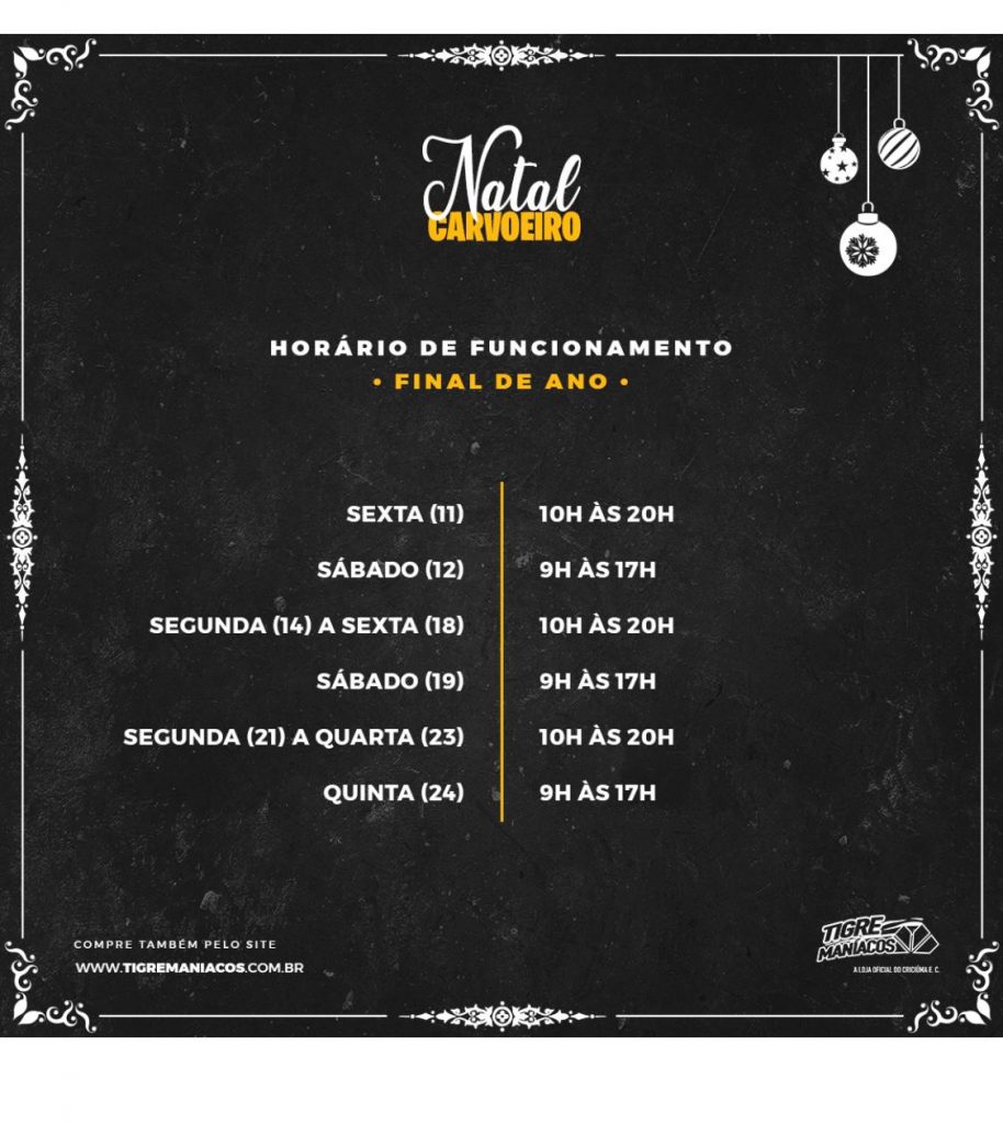 Além de aderir o horário especial de Natal para melhor atendimento aos torcedores, a Loja Tigre Maníacos está com várias promoções em seus produtos. Considerada um sucesso de venda entre os torcedores, a camisa Carvoeira que foi lançada em homenagem a história da cidade de Criciúma, está no valor de apenas R$ 99,90.