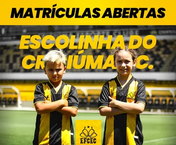 O Criciúma Esporte Clube está com inscrições abertas para a escolinha de futebol para meninos e meninas de 3 a 15 anos. Informações podem ser obtidas pelo WhatsApp 48 9978-4010.