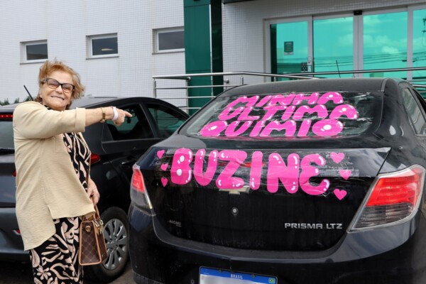 ‘Minha última quimio, buzine!’ – a frase estampada em letras garrafais e rosa vibrante na traseira do carro de dona Zenilde Júlia da Silva Salvan, de 85 anos, era impossível de ignorar. Colocada ali pela família, a mensagem não só chamava atenção, mas celebrava uma vitória muito aguardada: o fim de mais uma etapa no tratamento contra o câncer.