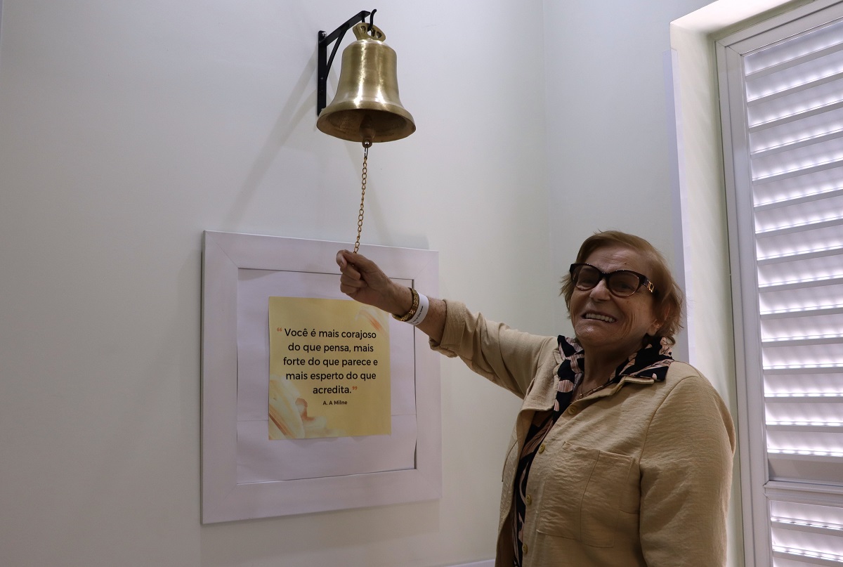 Quando a idosa terminou a sua última sessão, tocou o tradicional sino do hospital — um rito simbólico para todos os pacientes que superam o câncer. Emocionada, ela agradeceu os cuidados e o carinho dos colaboradores, desejou força aos outros pacientes e seguiu para o carro, onde a aguardava a grande surpresa: uma frase simples, mas repleta de emoção.