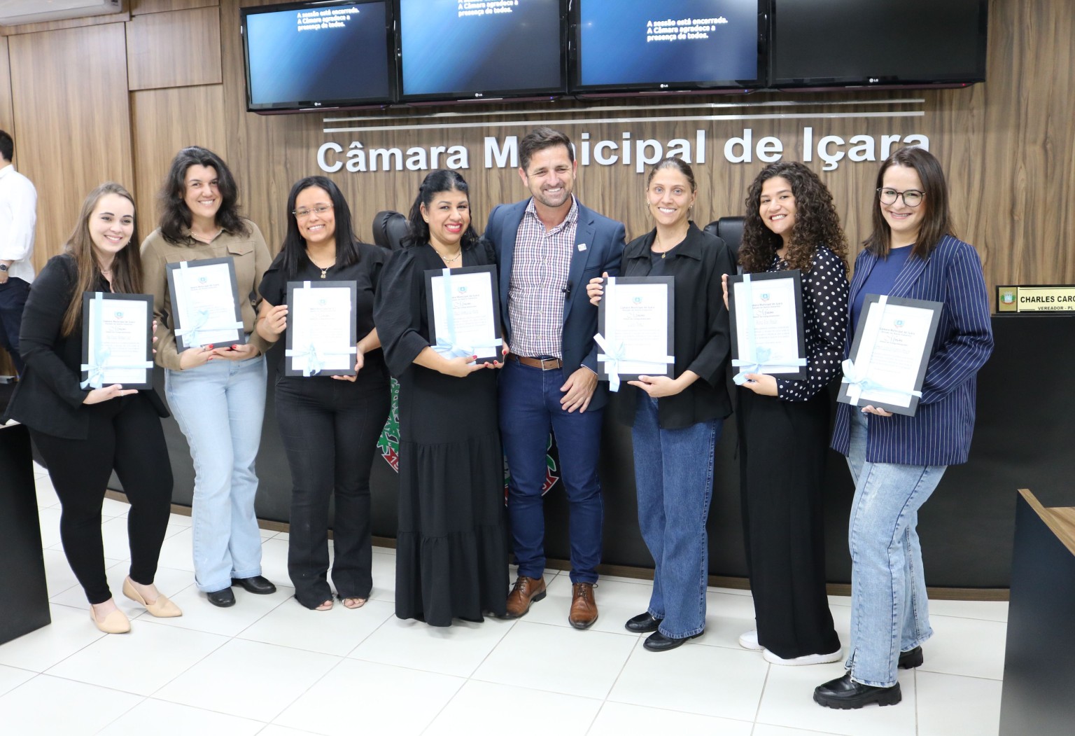 “Esse trabalho representa mais do que uma função educacional, sendo um verdadeiro compromisso com a cidadania, com o respeito à diversidade e com a construção de uma sociedade mais justa e inclusiva”, destacou o proponente das moções vereador Charles Cargnin (PL). Na sessão ordinária, no espaço do horário político, o vereador Charles Cargnin convidou a professora e intérpretes em Libras, Ana Paula Marques Luiz, para traduzir para Libras o seu pronunciamento, devido a presença de pessoas com surdez.