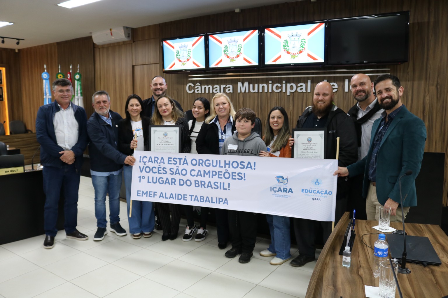 A competição contou com a participação de 1.435 escolas de todo o Brasil. “Essa conquista não apenas projeta o nome de Içara em âmbito nacional, mas também evidencia o papel transformador da educação, quando aliada à consciência ambiental”, disse o autor das moções vereador João Luiz Nunes (PP). Os vereadores Da Rolt (PL), Charles Cargnin (PL) e Duca Zata (PP) participaram da entrega da homenagem.