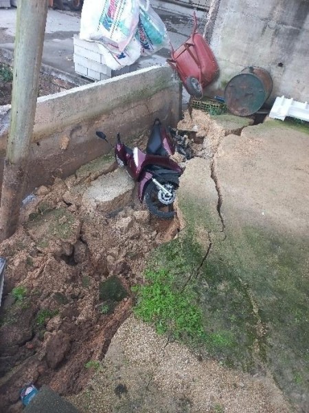 No local, os policiais confirmaram a situação, na qual uma motoneta Honda/Biz encontrava-se engolida pelo buraco e parcialmente soterrada, devido ao desmoronamento do barranco, sendo visível também que a estrutura da garagem apresentava-se comprometida em decorrência do ocorrido.