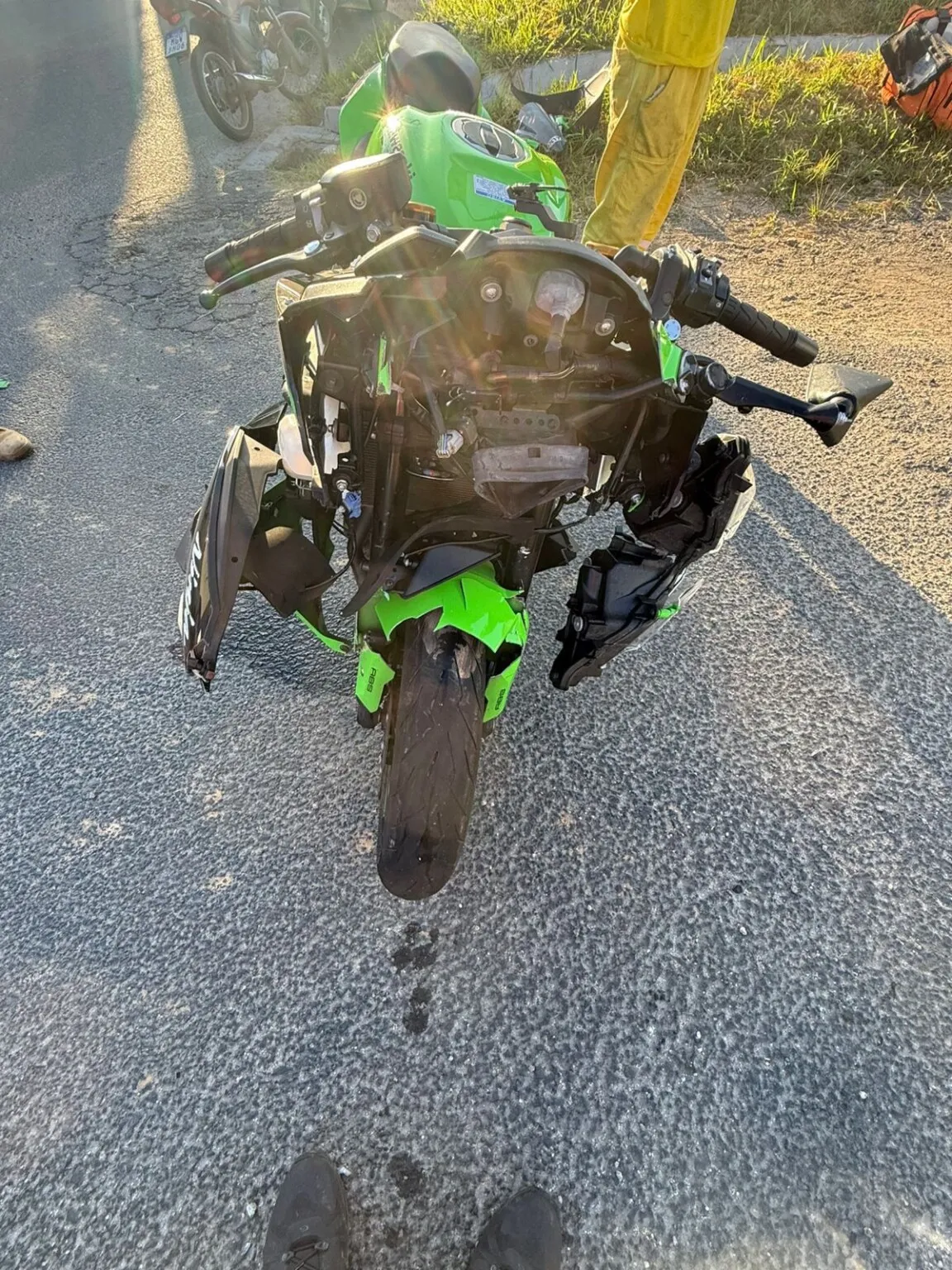 Ao chegar ao local, a equipe de atendimento encontrou o condutor da motocicleta, um jovem de 24 anos, caminhando às margens da via. Ele apresentava dor na região da boca, com um pequeno corte, além de escoriações nos membros inferiores.