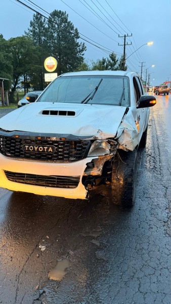 De acordo com as informações, um homem maior de idade, condutor de uma motocicleta Honda Biz, sofreu uma colisão frontal com uma caminhonete Hilux branca. Após o impacto inicial, a vítima ainda foi atingida por outro veículo que trafegava no mesmo sentido, uma Duster de cor marrom.