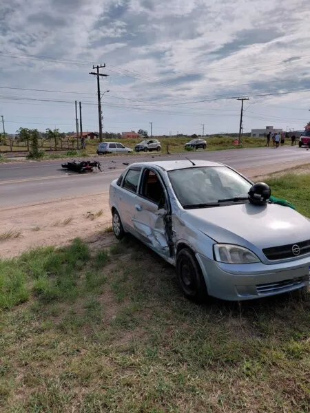 A colisão envolveu um automóvel Corsa, com placas de Tubarão, e uma motocicleta Honda/Twister, com placas de Laguna.