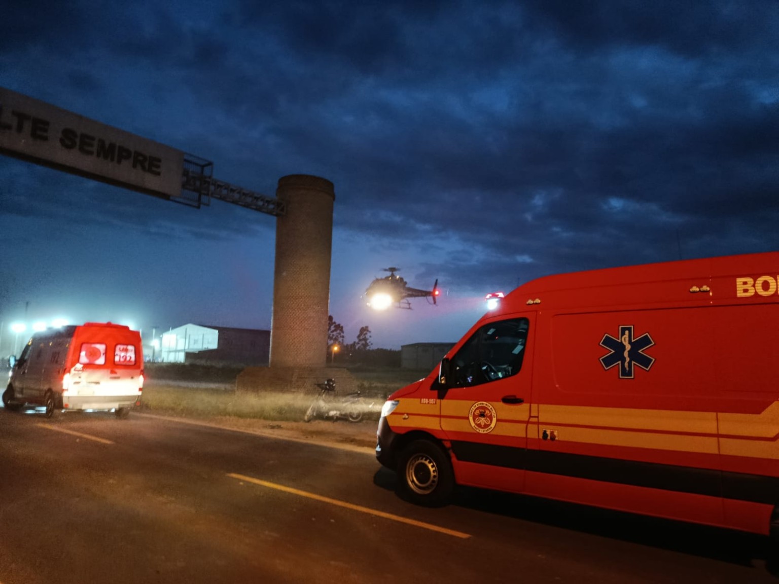A vítima recebeu imobilização com colar cervical e maca rígida. Na sequência, o SAMU prestou apoio ao atendimento. Diante da gravidade do quadro, o SARASUL foi acionado, assumiu o atendimento e realizou o transporte aeromédico do motociclista.