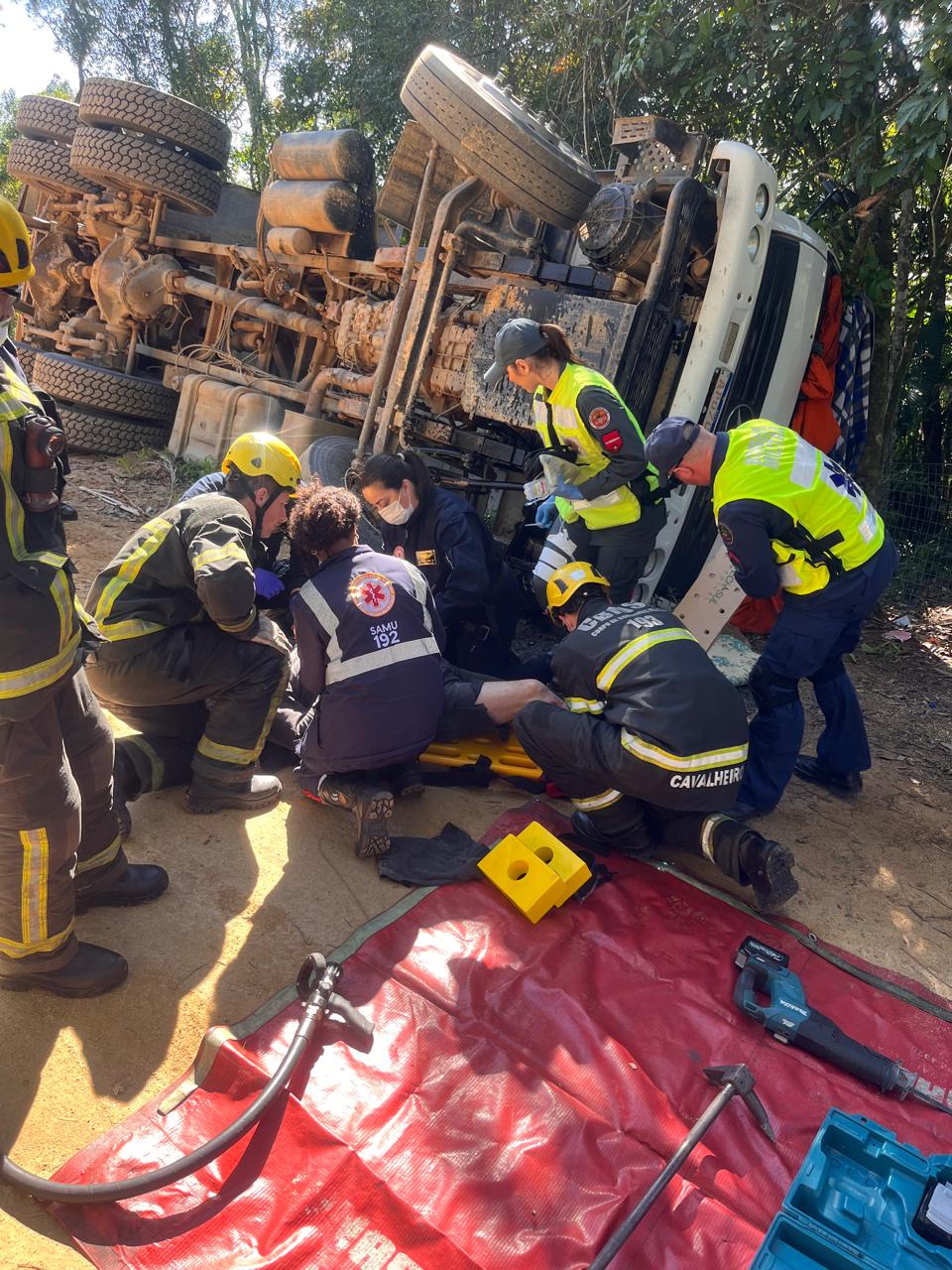 Populares relataram que o motorista chegou a ficar com o membro inferior preso sob a cabine e foi auxiliado por moradores, que utilizaram uma pá para soltá-lo. Quando as equipes de emergência chegaram, a vítima ainda estava dentro da cabine. Para o acesso, os bombeiros realizaram o corte do para-brisa com uma serra sabre.